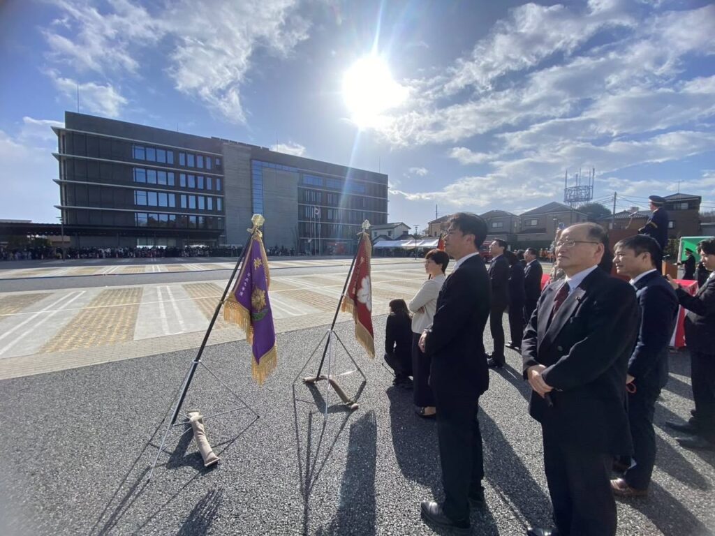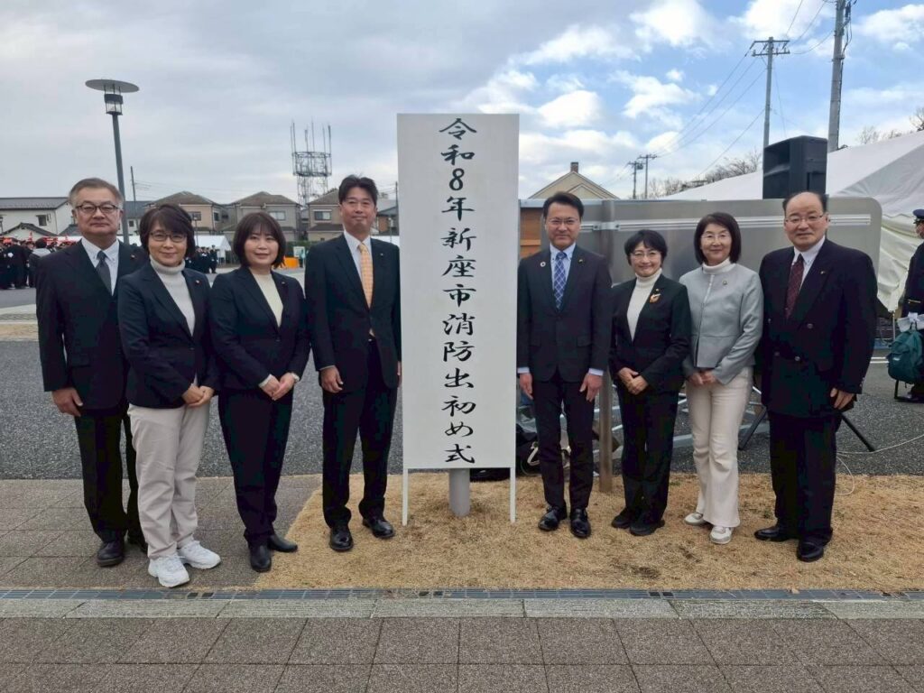 出初式 2026年1月11日 本日は新座市消防出初式に出席させていただきました。厳粛な雰囲気の中、皆様の統制のとれたお姿に改めて地域防災を支える使命感と誇りを強く感じました。日夜を問わず、市民の命と暮らしを守ってくださっている皆様に心から感謝申し上げます。